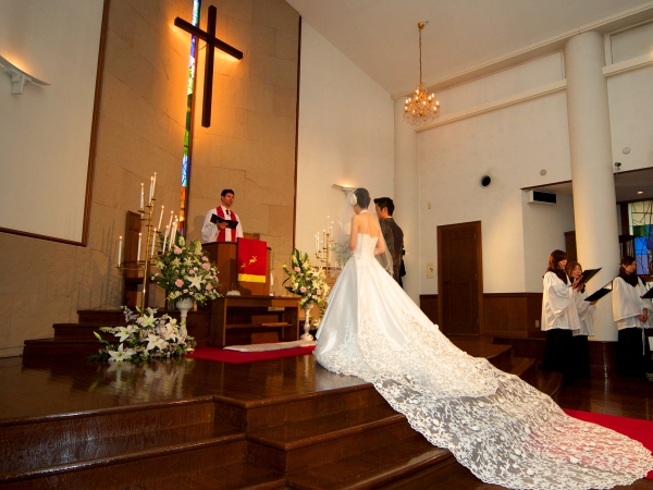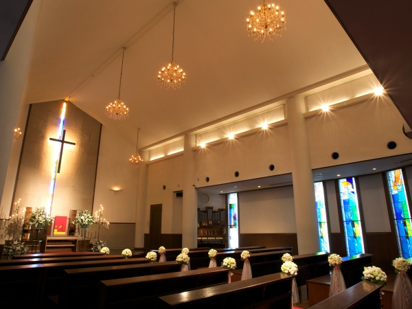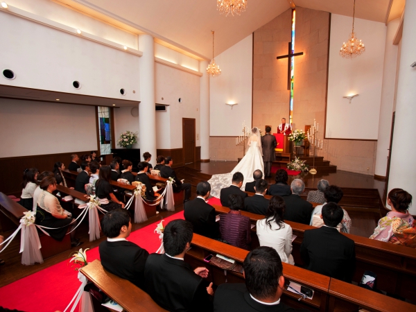 厳かな雰囲気の中で奏でられる 聖歌隊の透き通る歌声、オルガン・フルートの生演奏に包まれながら 至福のときを迎えます。